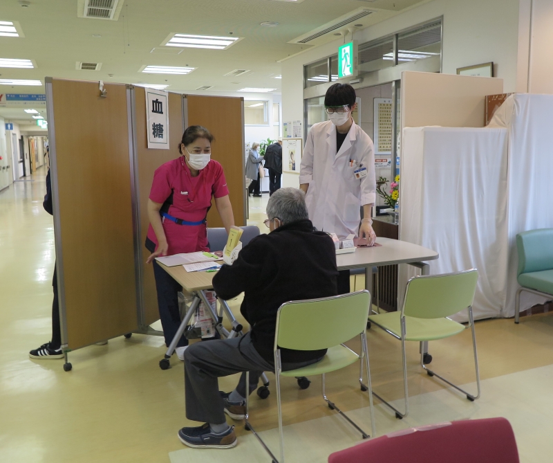 2020年から3年間はコロナ禍のため、ポスター掲示のみでしたが、この度4年ぶりに糖尿病週間行事をおこないました。糖尿病看護認定看護師や慢性疾患専門看護師、薬剤師、糖尿病血液内科医師が血糖値測定や血圧測定、健康相談を行いました。久しぶりの開催であり、たくさんの近隣の方が参加されました。